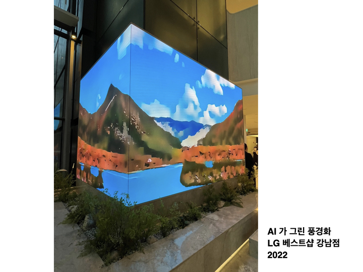 AI is also an expression of Nature, a mirror of Nature. This work is the product of a machine learning operations on an innovative sectional dataset where the artistic gesture goes deep into the training methods for the algorithm itself. Using photographic landscape images, we begin to understand better humanity’s relationship to nature and get a clue about how to sustainably care for the planet during an age of rapid technological progress. .